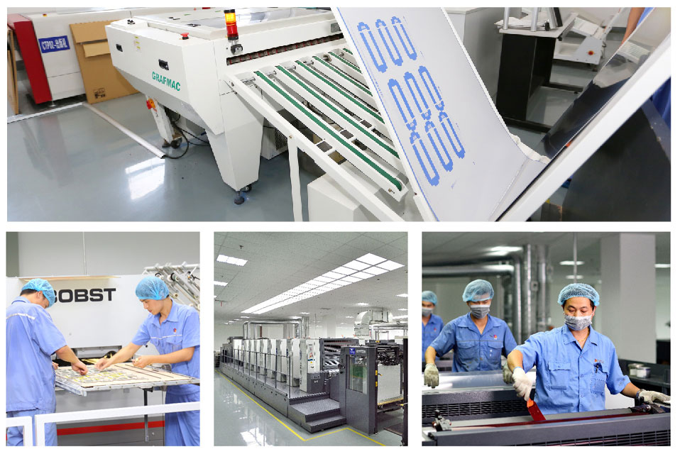 柯達制版機、羅蘭印刷機、覆膜機、燙金機、博斯特模切機、博斯特糊盒機等設備,實現不同工藝組合,展現圖文細節和美感,穩定的產品質量